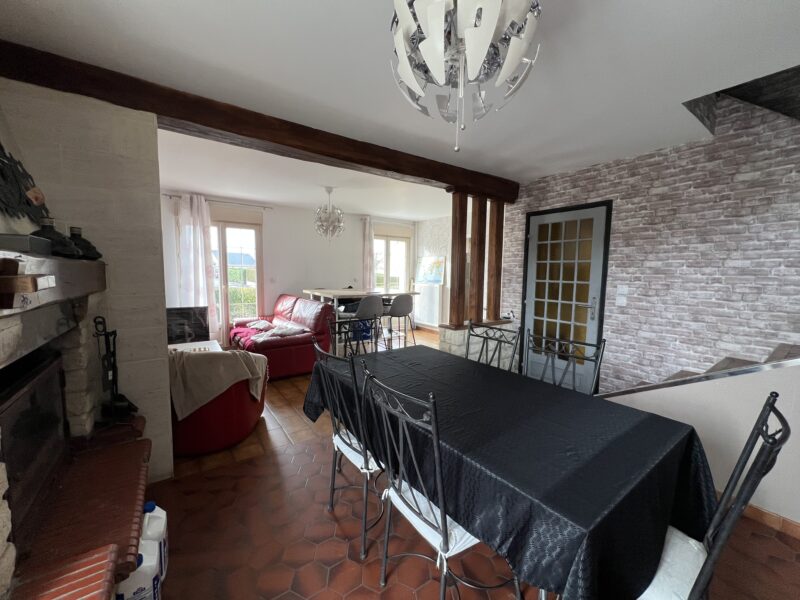 MAISON FAMILIALE Comprenant un séjour/salon avec cheminée, une véranda, une cuisine aménagée et équipée, 1 ch avec sde, wc au RDC, palier, 3 ch, sdb, wc à l’ETAGE. Sous-sol complet.