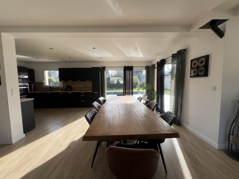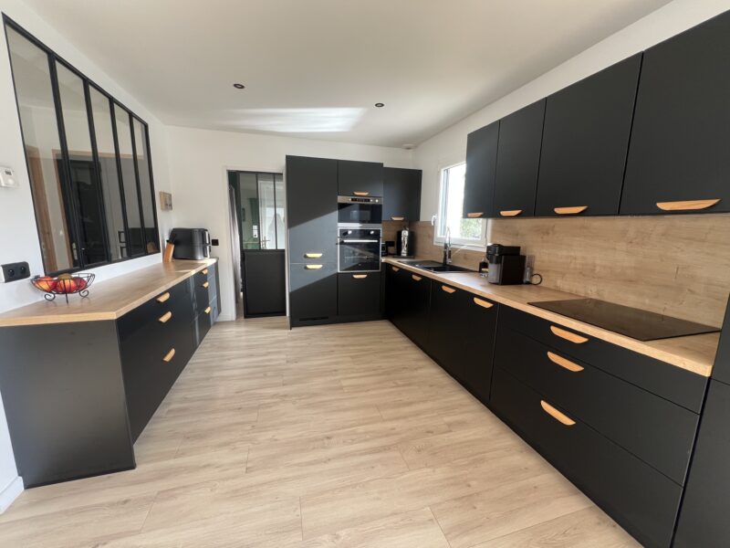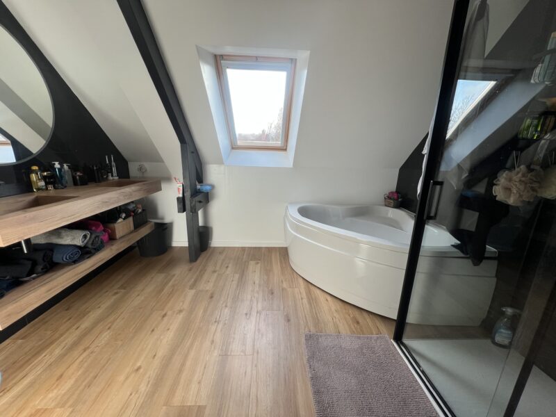 MAISON RECENTE Comprenant une spacieuse pièce de vie avec poêle à granulés, cuisine aménagée et équipée, 1 ch+sde, wc, buanderie au RDC, palier, 3 ch, sdb+douche avec dressing, wc à l’ETAGE. Double garage.